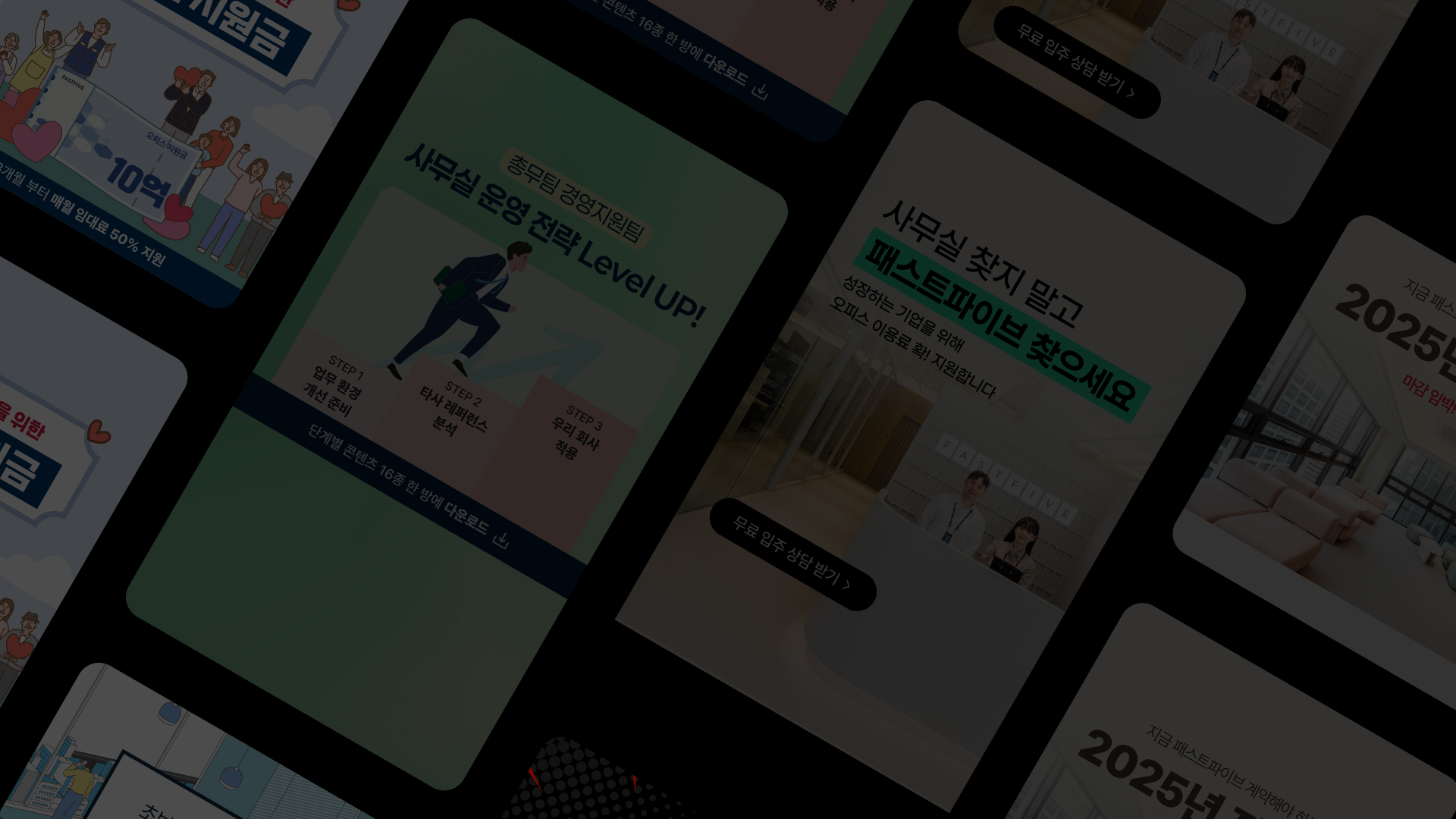 FASTFIVE의 숏폼 콘텐츠를 위한 비주얼 디자인 프로젝트로, 2025년 9월부터 현재까지 지속적으로 작업하고 있습니다. 1:1과 9:16 비율의 숏폼 포맷에 맞춰 레이아웃 구조, 텍스트 가독성, 주요 시각 요소의 배치를 조정해 각 콘텐츠의 전달력이 명확해지도록 디자인했습니다.